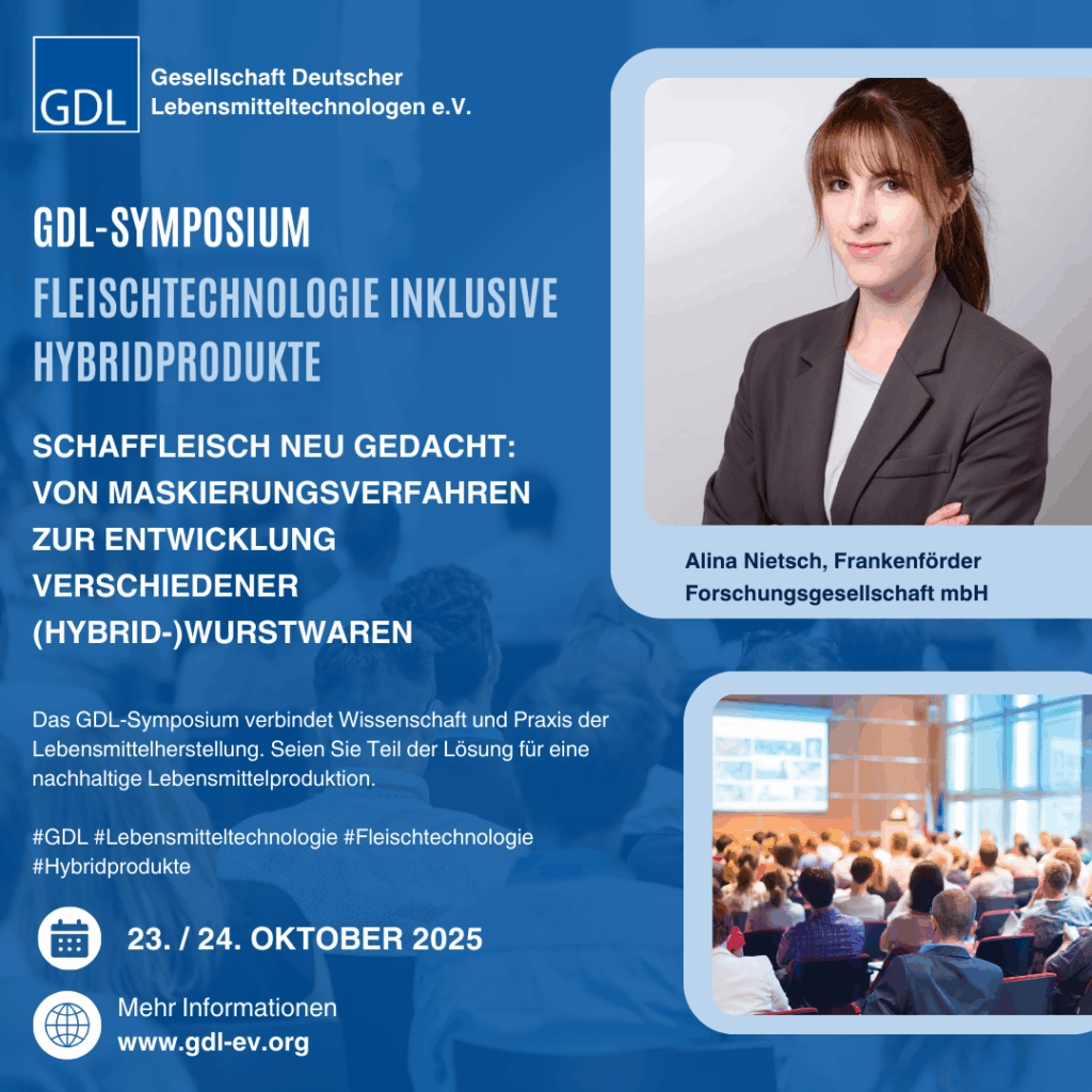 Vom 23.–24. Oktober 2025 fand in Gerlingen bei Stuttgart das GDL-Symposium der Gesellschaft Deutscher Lebensmitteltechnologen e.V. statt, welches Industrie, Forschung und Nachwuchs auf einer gemeinsamen Plattform zusammenbrachte. Teilnehmende kamen aus den Bereichen Fleischverarbeitung, alternative Proteine, Food Ingredients, Maschinenbau sowie aus der Wissenschaft, darunter die Hochschule Bremerhaven.